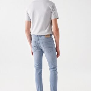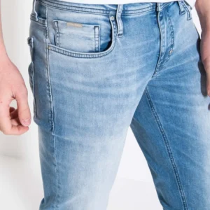 Vaqueros Slim. Azul claro. Pierna Slim. Tiro bajo. Cierre con botones en la parte frontal. Cinco bolsillos. Con presillas.Tejido principal