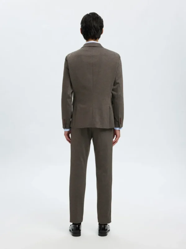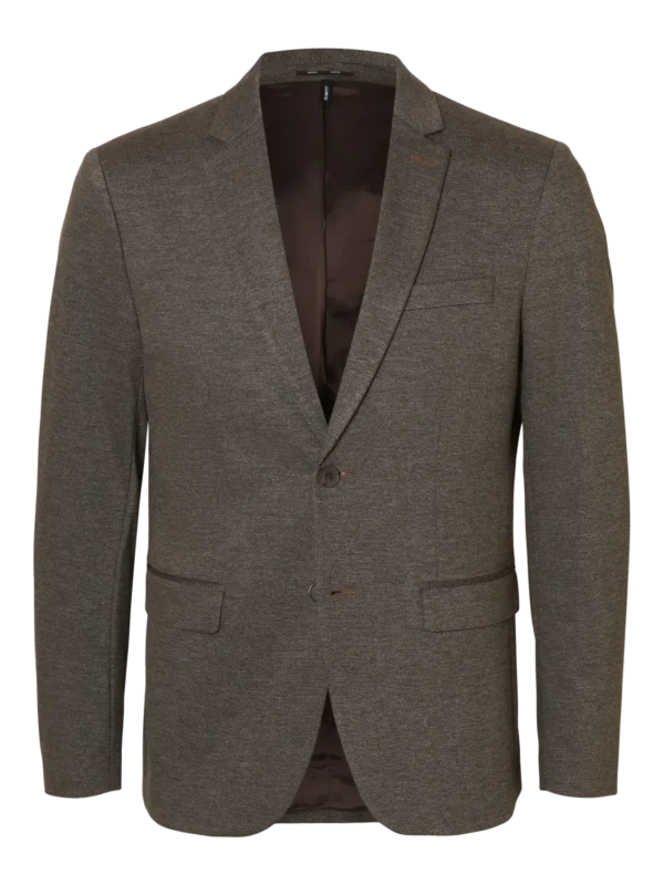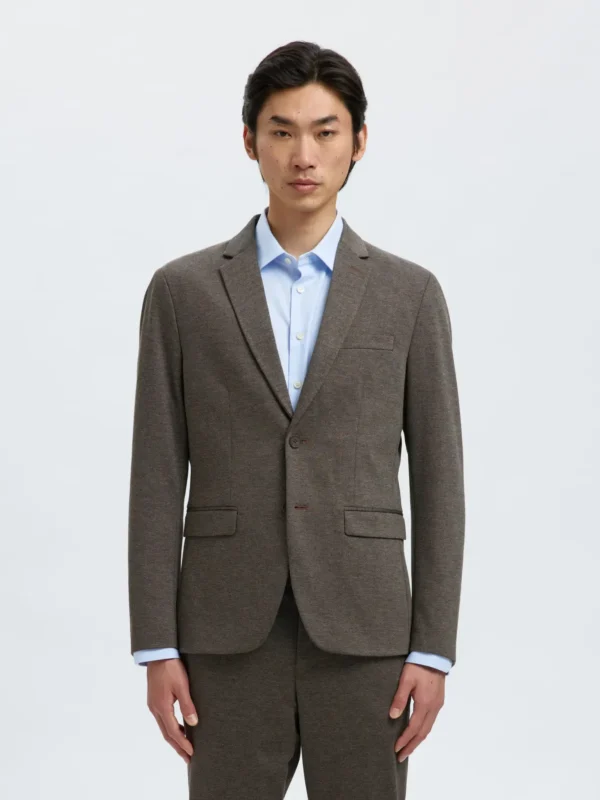 Su diseño cuenta con una solapa con muescas y puños abotonados, rasgos característicos de la sastrería clásica, pero presenta un aspecto moderno gracias a los bolsillos de parche inspirados en la ropa de trabajo. Además, está confeccionado con materiales reciclados y presenta un corte slim que acentúa los hombros y se estrecha en la cintura.