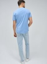 Camiseta tricolor. Color azul claro, blanco y azul oscuro. Corte slim. Cuello redondo. Mangas cortas. Detalle de logo en el pecho.